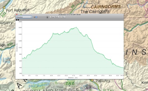 After an easy road section past Ruthven barracks we picked up the good track that would take us up to Gaick Lodge. Beyond  the lodge the track would deteriorate before eventually becoming a section of single track running along the side of Loch an Duin. This section was fairly technical and required a fair bit of concentration as there was a steep drop off in places to catch you out if you were not careful. Once beyond this section the track became more manageable with only a couple of river crossing to contend with before we were on an easy run down to the A9 where we crossed the dual carriageway at Dulnacardoch to pick up the Sustrans cycle route that followed the old A9 mainly downhill back into Blair Atholl.